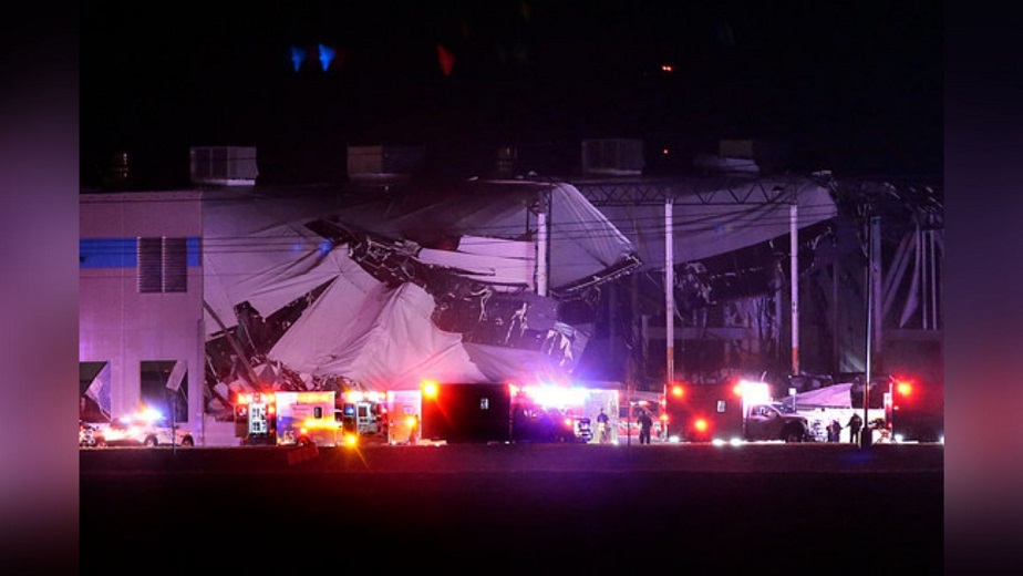 After a tornado ripped across the area, an Amazon warehouse in Edwardsville, Illinois, collapsed, and at least one death was reported in Missouri.